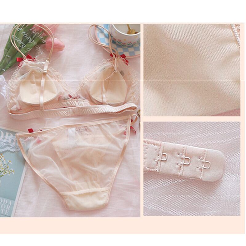 (A-Cカップ)チェリー 刺繍 リボン かわいい ワイヤーなし ブラ&ショーツセット64270929