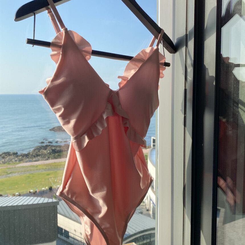 (2点)スウィート フリル 無地 清新 M L LL 体型カバー モノキニ レディース 水着64486562