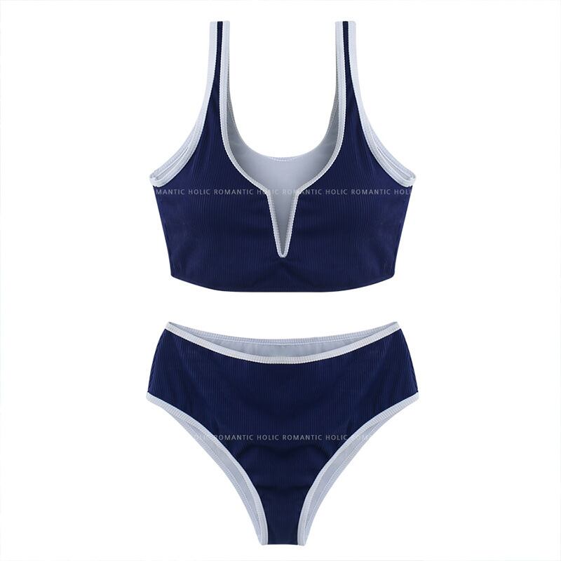 ins風 無地 シンプル ブルー ビキニ タンキニ 体型カバー 温泉 M/L/XL 水着65020040