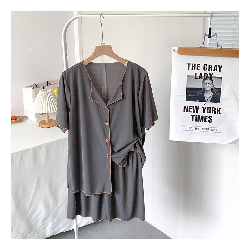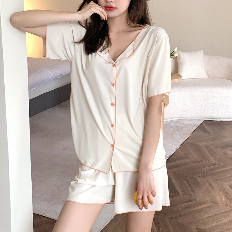 シンプル 柔らかい 4色 夏 ボタン付き 寝間着 レディース 半袖セット・パジャマ65216435