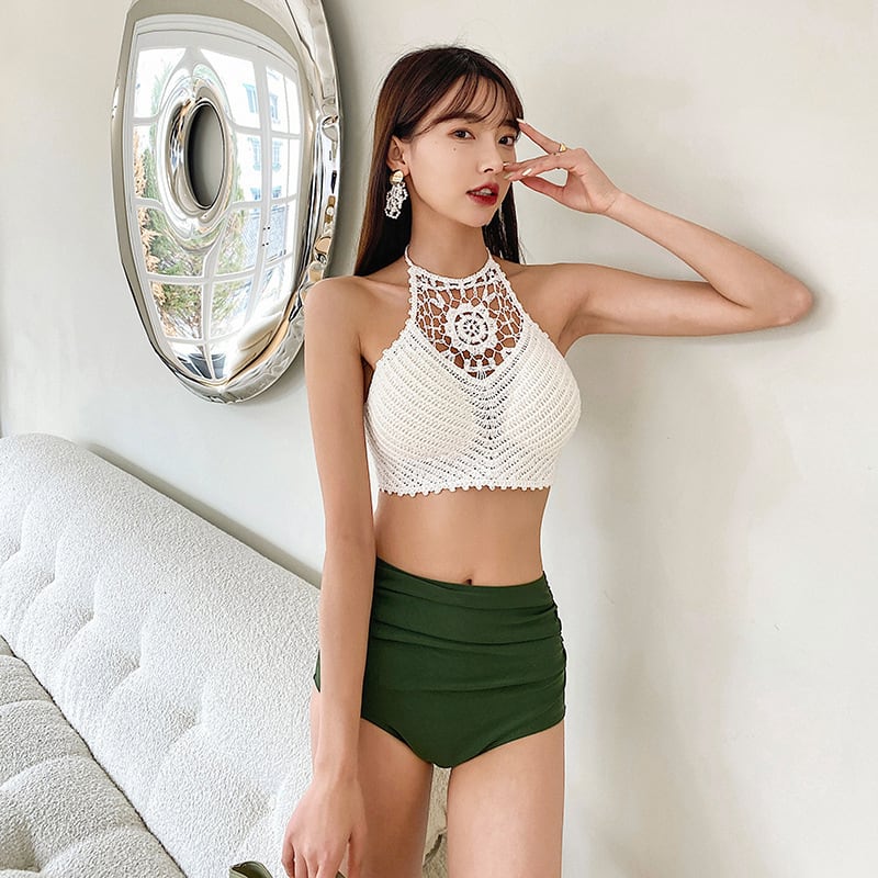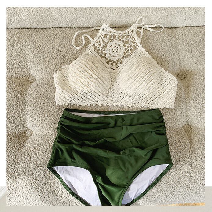 かぎ編み ホルターネック リボン 海 パッド付き ビキニ タンキニ 温泉 水泳 体型カバー 水着65437844