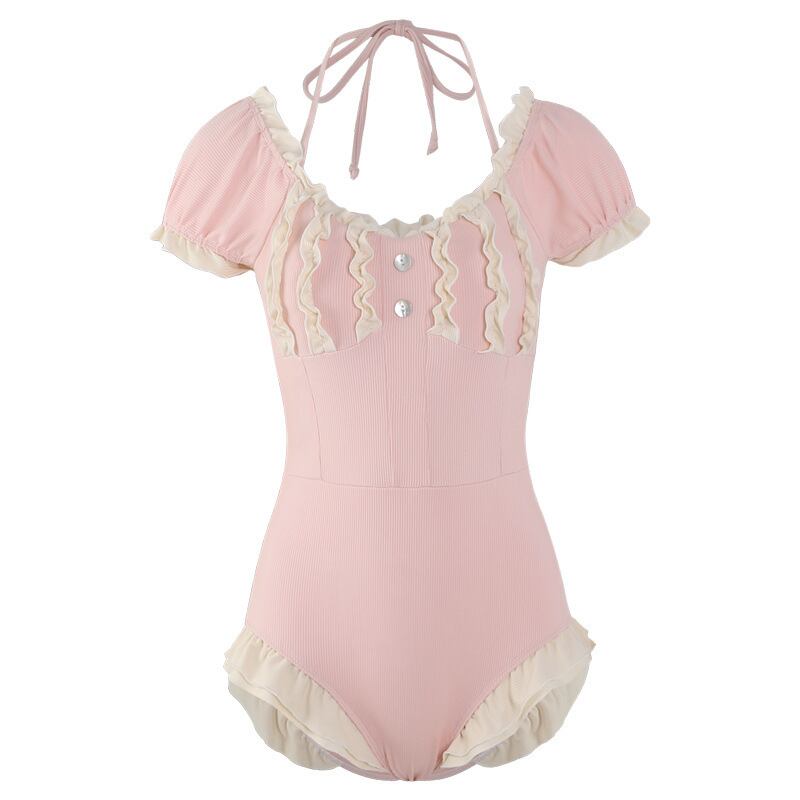 スウィート ins風 ピンク フリル モノキニ 温泉 水泳 ワイヤーなし 体型カバー 水着65531233