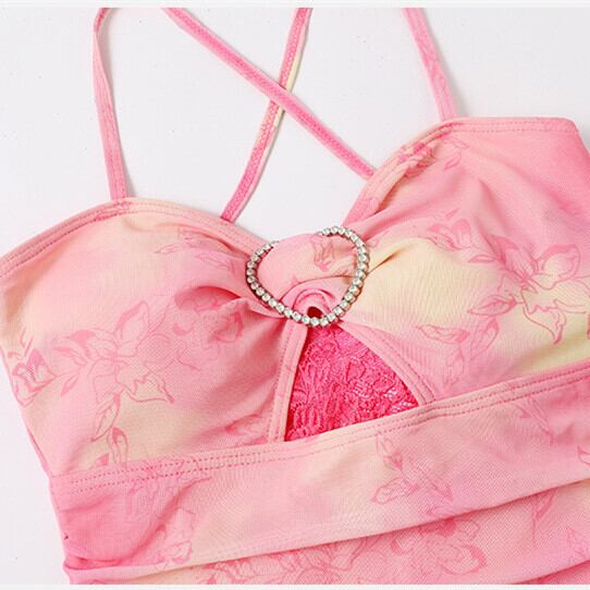 スウィート ギャル レース ピンク ハート リボン ワイヤーなし モノキニ 温泉 体型カバー 水着65555761