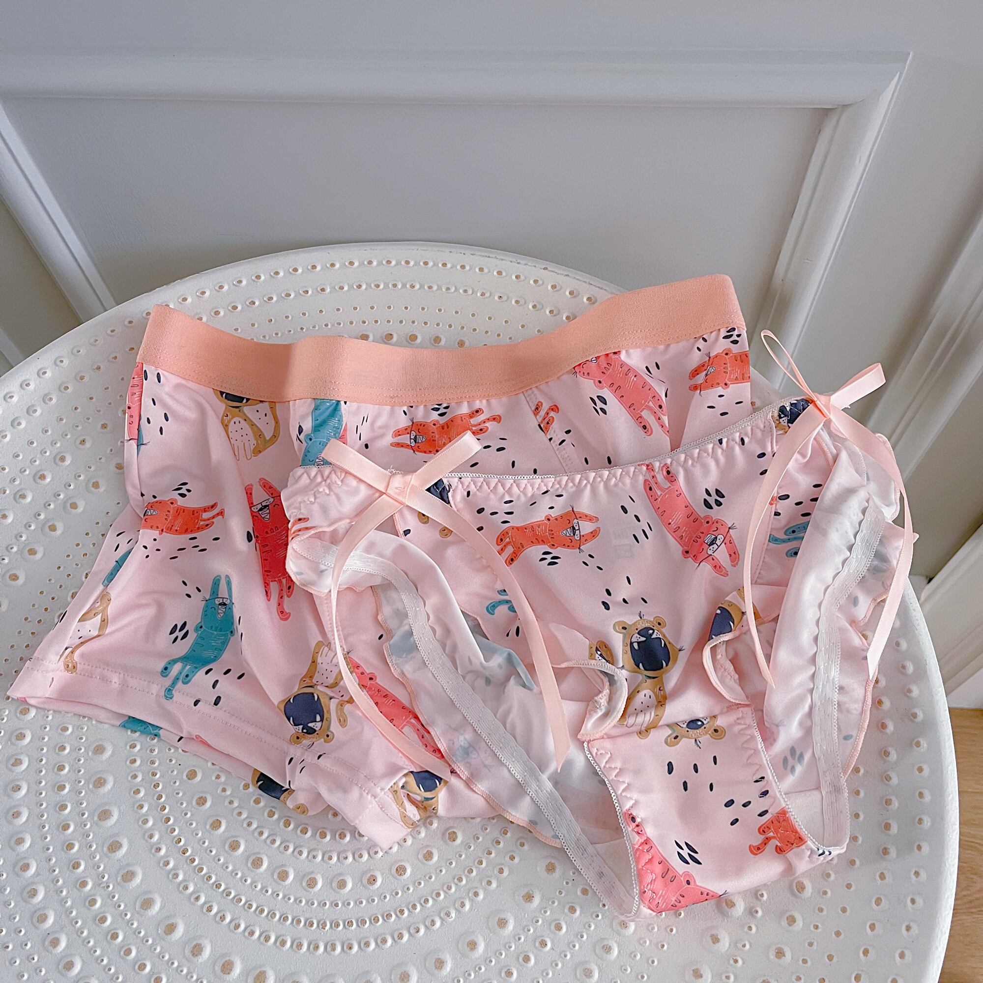 【カップル下着】ピンク かわいい プリント リボン 男女 2点セット パンツ ショーツ65922699