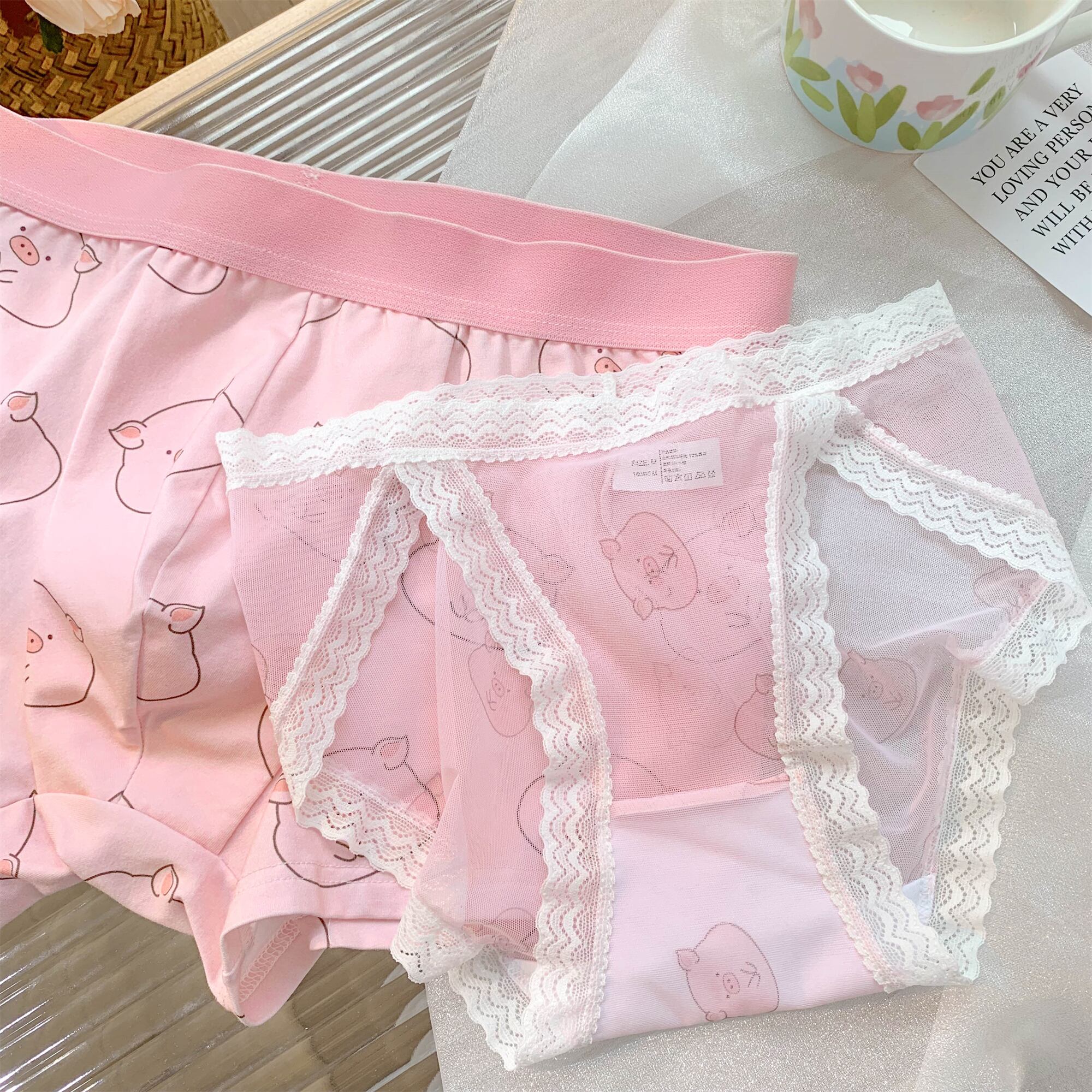 【カップル下着】超可愛い カートゥーン ピギー レース お揃い 男女 2点セット パンツ ショーツ65959250
