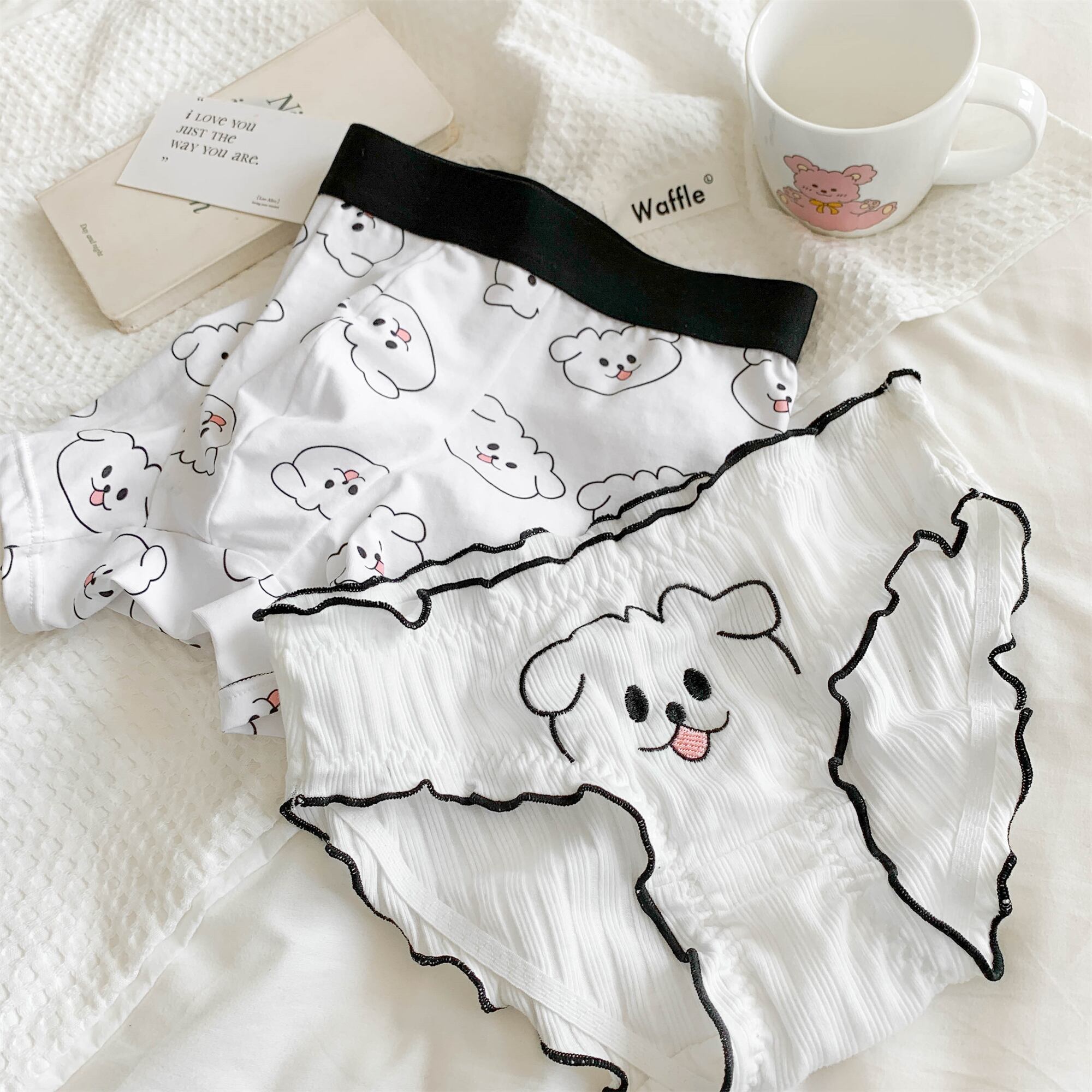 【カップル下着】萌え萌え カートゥーン 子犬 お揃い 男女 2点セット パンツ ショーツ65960618