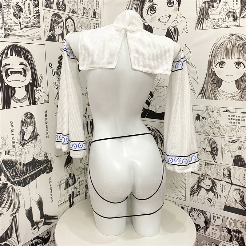 【百合シリーズ】(3点)太極拳ゴシップ プリント エロ 透かし彫り 穴あき コスプレ セクシーランジェリー66034741