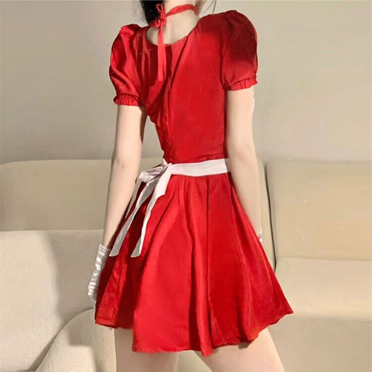 (3点)メイド服 レッド リボン かわいい S M L コスプレ 制服 ワンピース68303999