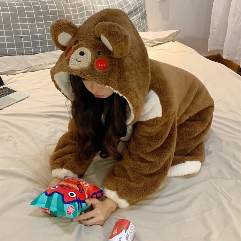 可愛い 小熊 萌え フード付き 秋冬 長袖ワンピース パジャマ バスローブ ガウン68664752