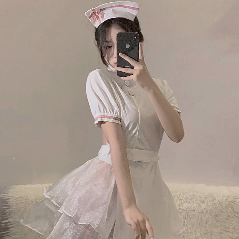 (4点)コスプレ ナース服 シースルー 背中見せ リボン 看護婦 誘惑 セクシーランジェリー70321327