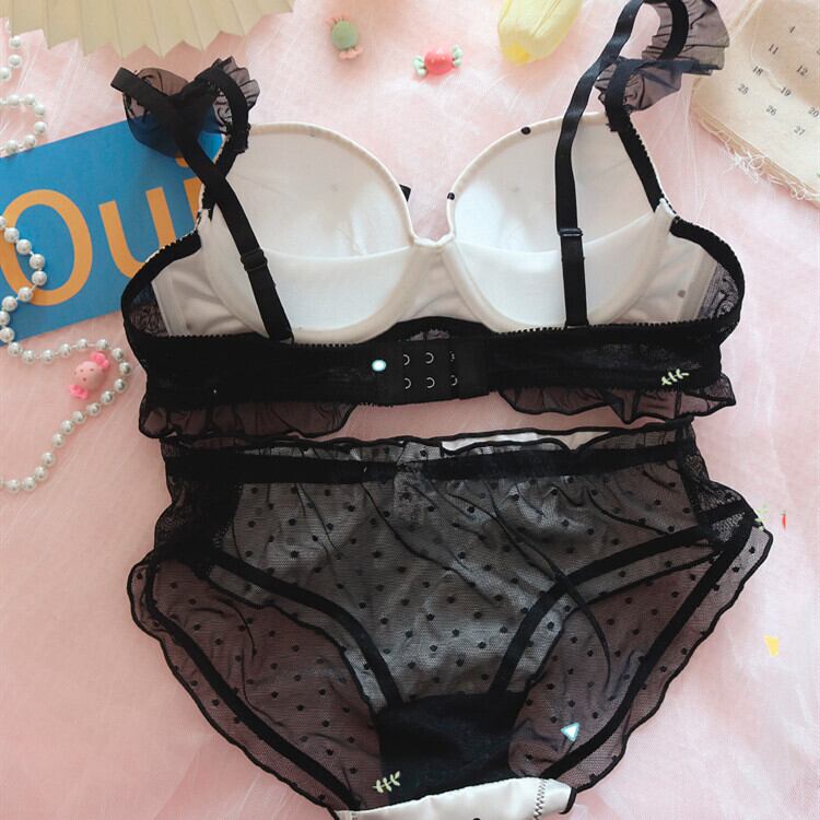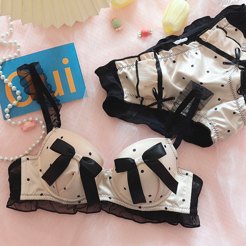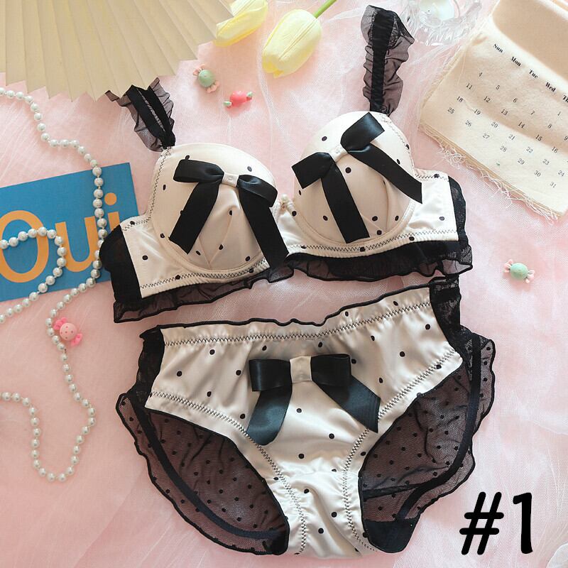 (A-Cカップ)日系 レース 水玉柄 リボン #1 #2 #3 可愛い ワイヤーなし ブラ&ショーツセット70357310