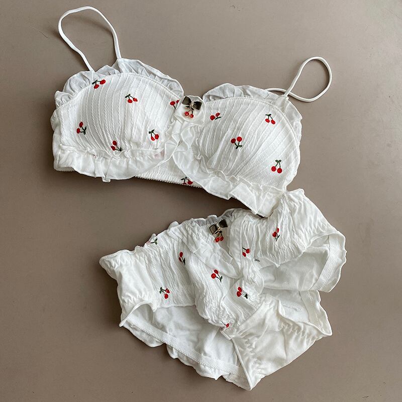 (A-Cカップ)スウィート チェリー プリント フリル 2色 可愛い ブラ&ショーツセット70420816