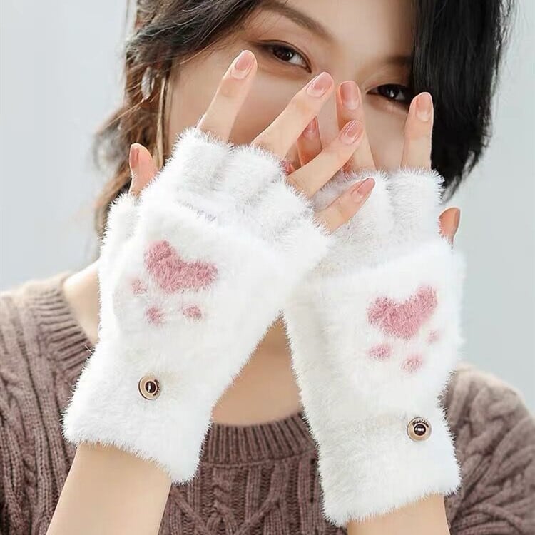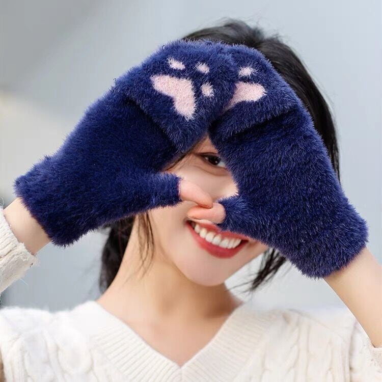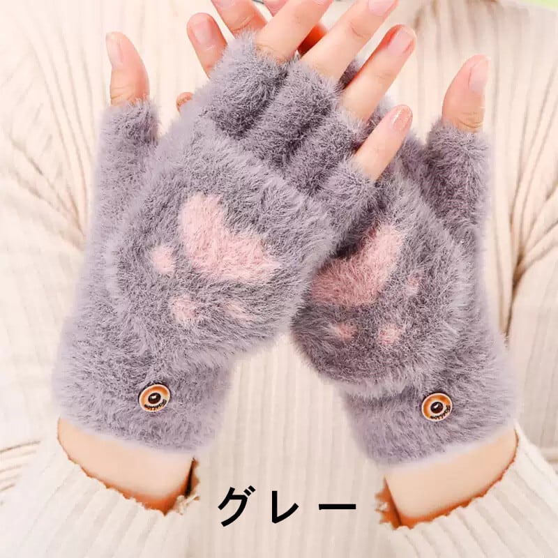 可愛い 猫爪 便利な 指出し 6色展開 スリット入り ふわふわ 裏ボア 手袋 小物 手袋 防寒70524154