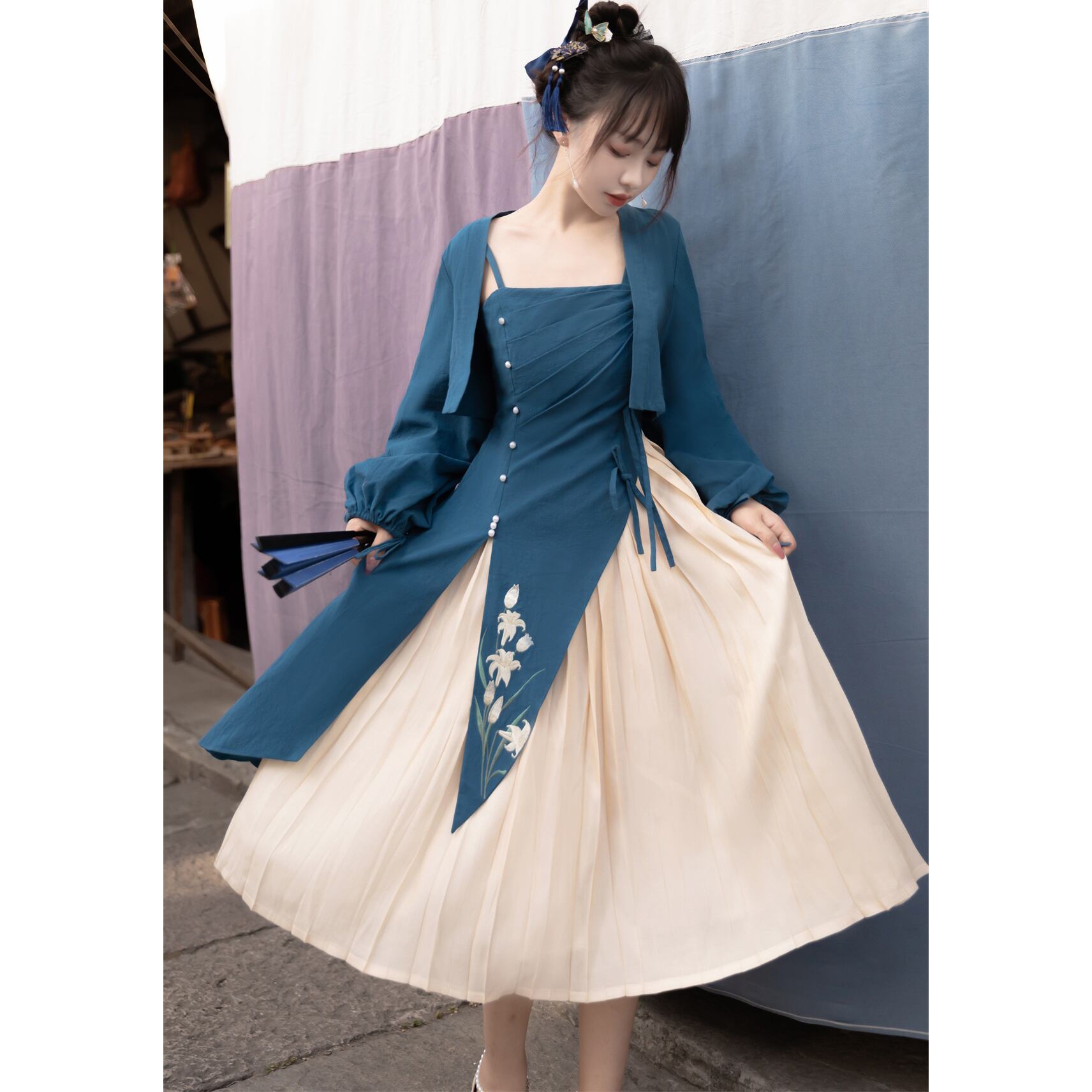 2023春新作【漢如初シリーズ】気質溢れる 2点セット チャイナ風 刺繍 切り替え アウター+ワンピース71369768