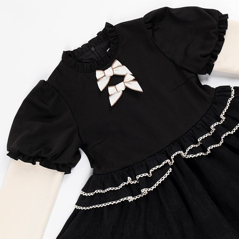3点セットアップ 可愛い リボン フェイクレイヤード 文化祭 ロリータ Lolita S M L ワンピース+ベスト71794055