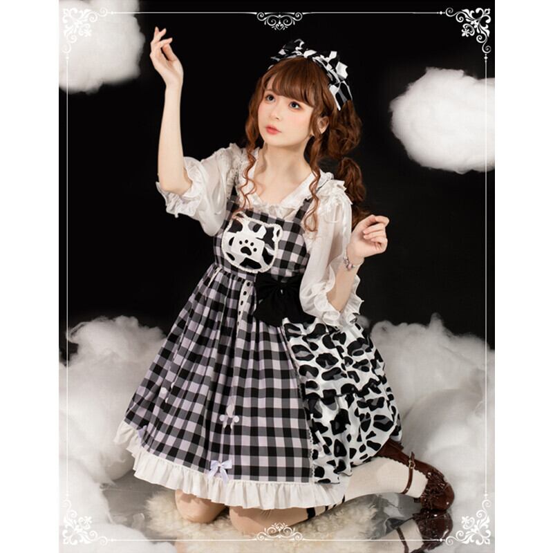 乳牛 チェック柄 切り替えし 可愛い ロリータ lolita 蝶結び JSK S M L XL 吊りワンピース72049175