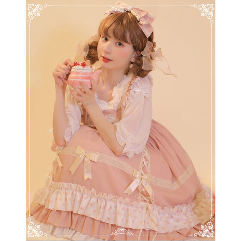 スウィート フリル ハート 水玉 蝶結び カーキ ピンク ロリータ lolita JSK S M L XL 吊りワンピース72129670