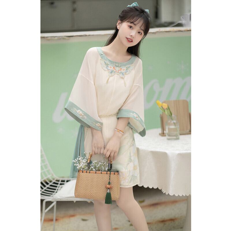✿2023春新作【漢如初シリーズ】セットアップ チャイナ風 プリント ラウンドネック S M L 吊りワンピース+ワンピース72243699