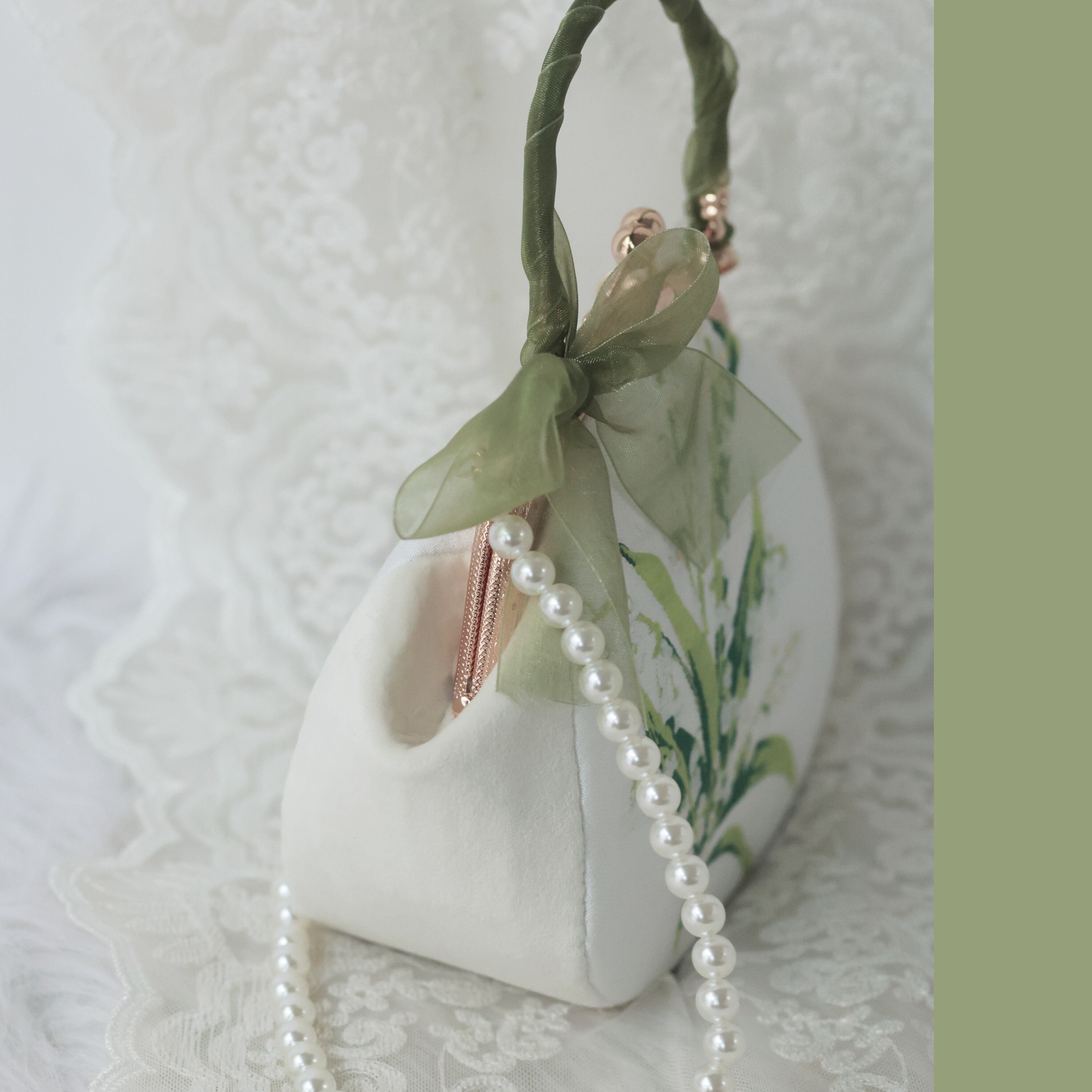 ✿2023春新作 森ガール スズラン リボン レトロ 漢服 3WAY使い方 手提げ 斜め掛け 宴会 バッグ72472474