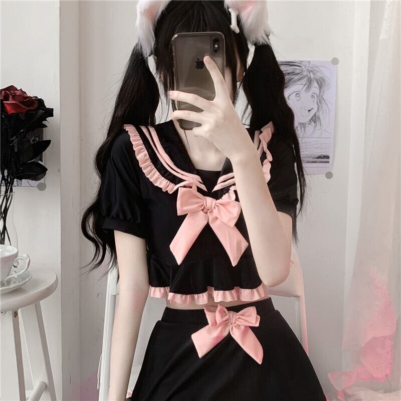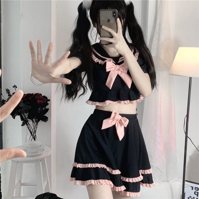 ✿2023春新作 目を奪われる 韓国系 水泳 可愛い リボン セーラー服の襟 タンキニ 体型カバー 水着72568891