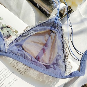 ✿2023春新作(A-Cカップ)フランス 刺繍 レース 花柄 透け感 2色 ワイヤーなし ブラ&ショーツセット72960385