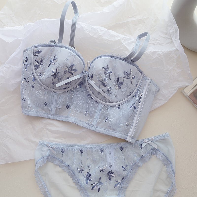 ✿2023春新作(A-Cカップ)フランス エレガント レース 刺繍 下着 ワイヤー入り ブラ&ショーツセット72960686