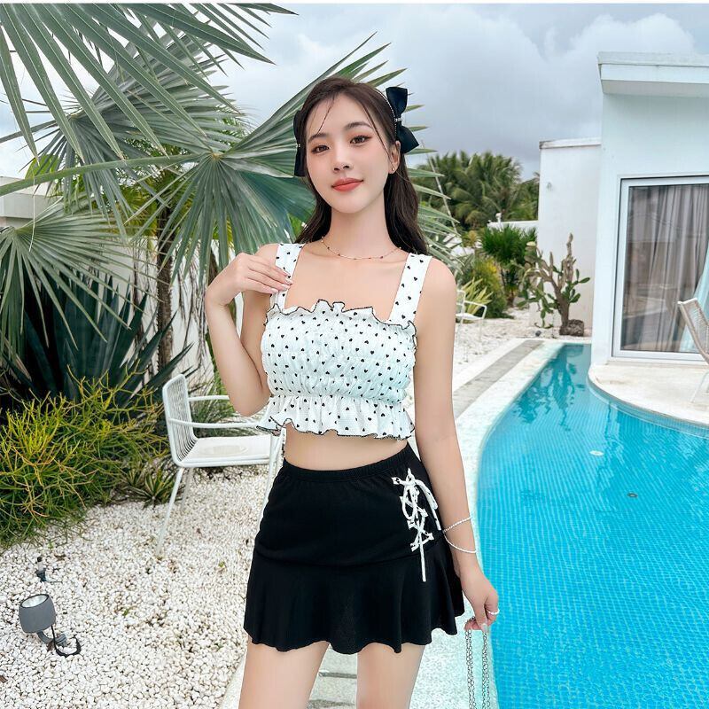 おしゃれ リボン ハート プリント フリル 3色展開 M L XL XXL タンキニ 水着73070018