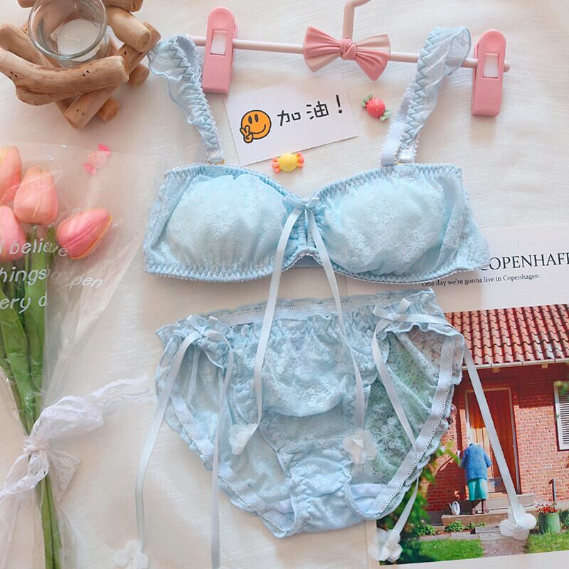 ✿2023春新作(A-Cカップ)レース リボン 透かし彫り 下着 3色 ワイヤーなし ブラ&ショーツセット73140270