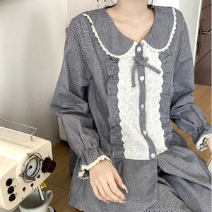✿2023春新作 韓国系 可愛い チェック柄 清新 フリル リボン 長袖セット・パジャマ73166173