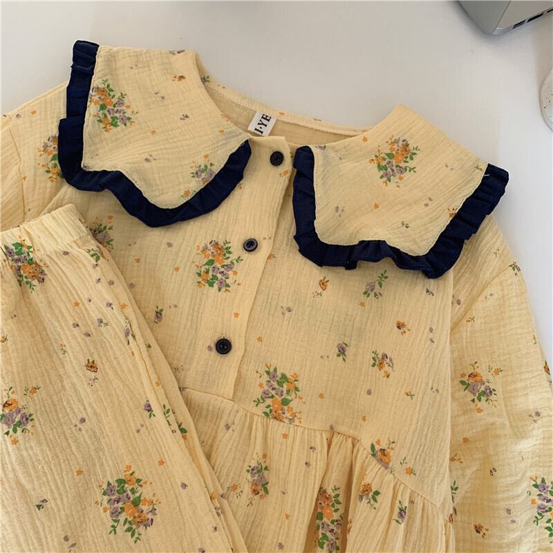 ✿2023春新作 韓国系 可愛い プリント 小柄 フリル イエロー 長袖セット・パジャマ73176975