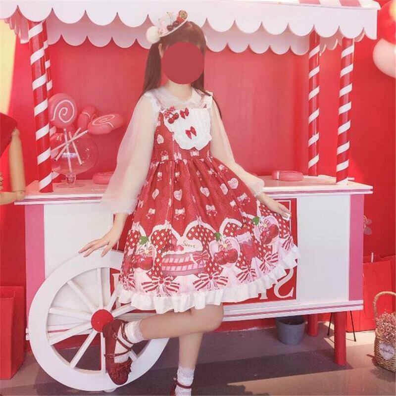 ✿2023春新作 絶対可愛い プリント jsk ボウタイ ロリータ Lolita 文化祭 レッド ピンク ワンピース73205258