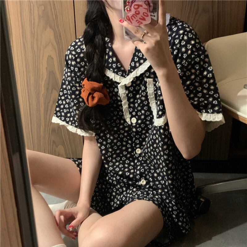 ✿2023春新作 小柄 プリント フリル ゆったり フリル 夏 レディース 半袖セット・パジャマ73211245