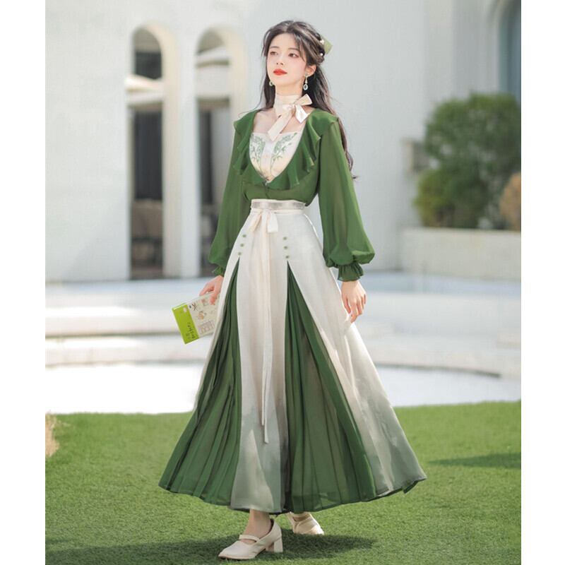 ✿2023新作【漢如初シリーズ】4点セットアップ チャイナ風 刺繍 トップス+キャミソール+リボン+スカート73331984