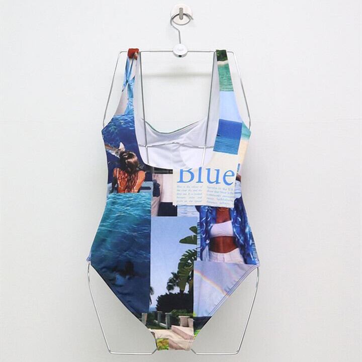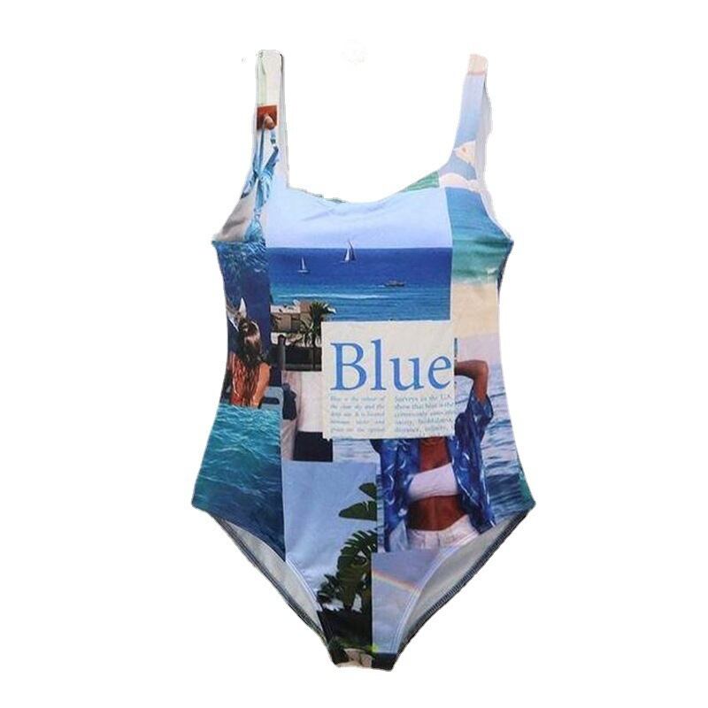 ✿2023新作 大注目 韓国系 プリント 配色 パッド付き ワイヤーなし M L LL モノキニ 水着74513912