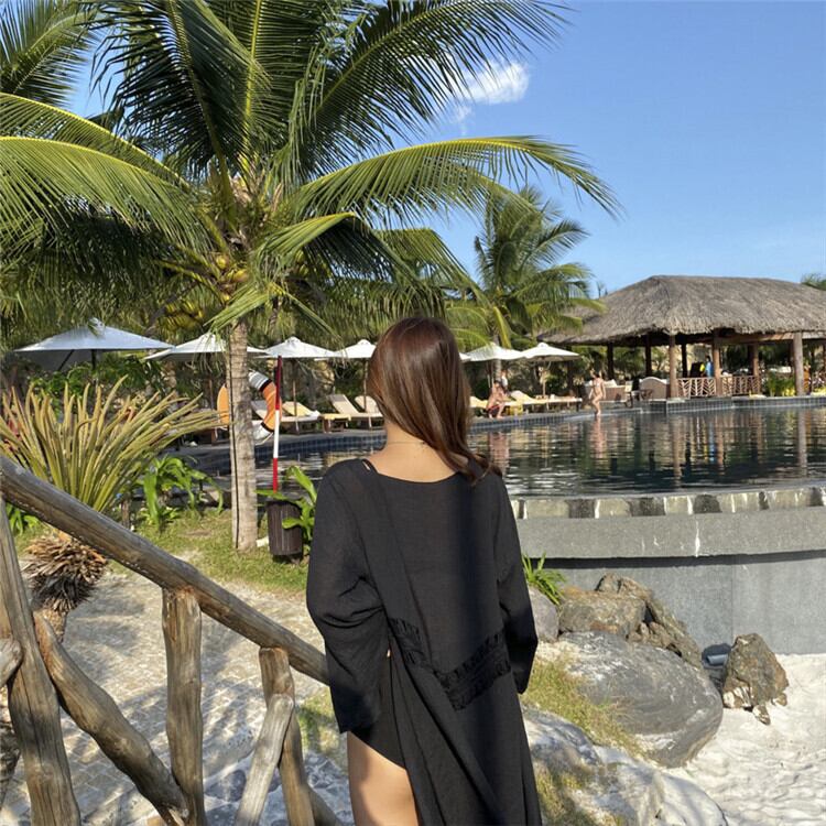 ✿2023新作 ビーチウェア ビキニカバー 長袖 透け感 ホワイト ブラック ビキニブラウス74698603