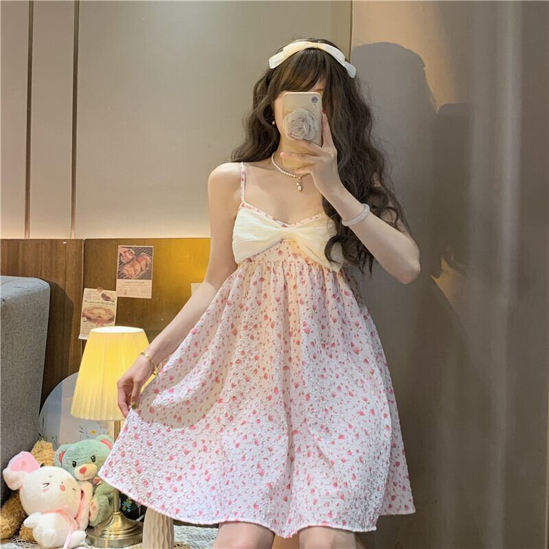 ✿2023新作 スウィート プリント 蝶結び ピンク キャミソールワンピース・パジャマ74852405