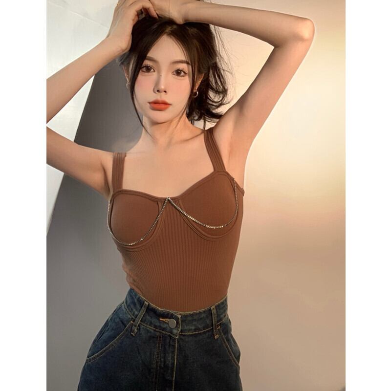 ✿2023春新作 おしゃれ ギャル チェーン取り外し可能 4色展開 パッド付きトップス キャミソール74859460