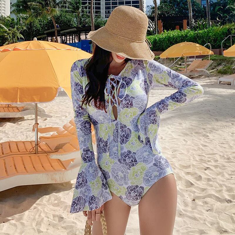 ✿2023新作 おしゃれ セクシー フレア袖 プリント リボン 2色 ワイヤーなし M L LL モノキニ 水着74889797