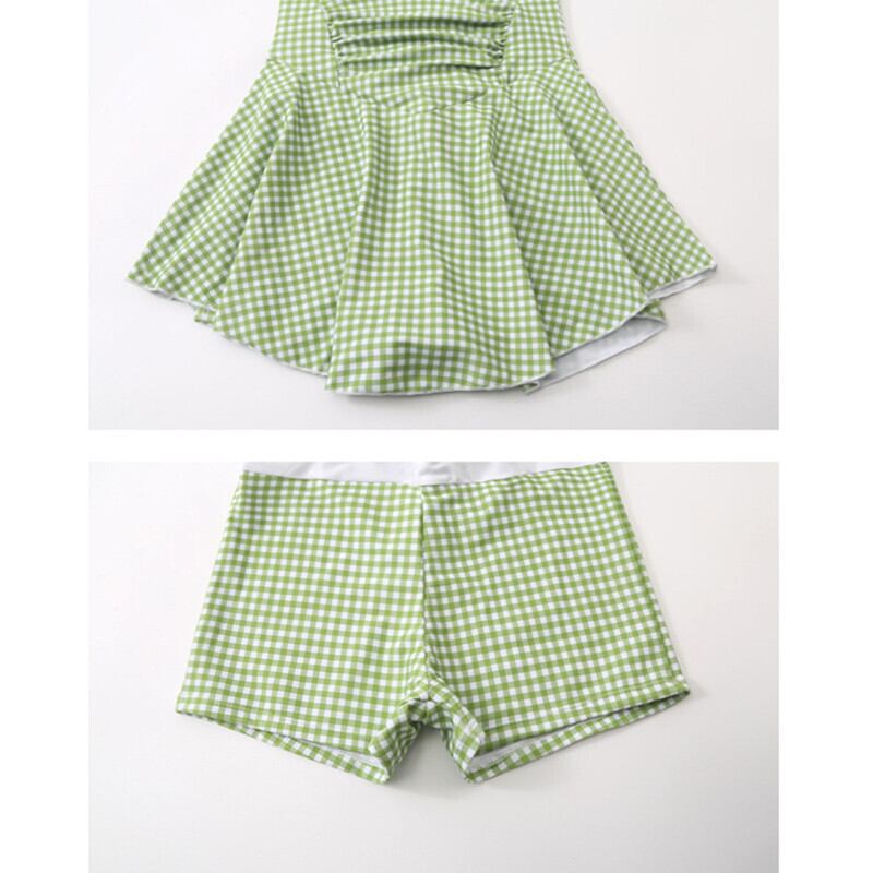 ✿2023新作 日系 チェック柄 ホルターネック リボン M L LL パッド付き ワンピース 水着75136437