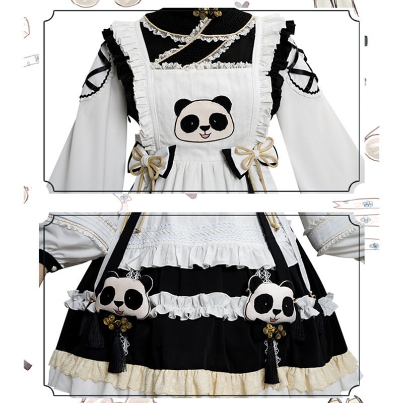 (5点セット)超可愛い オリジナル パンダ メイド服 チャイナ風 ロリータ 長袖 OPワンピース75962168