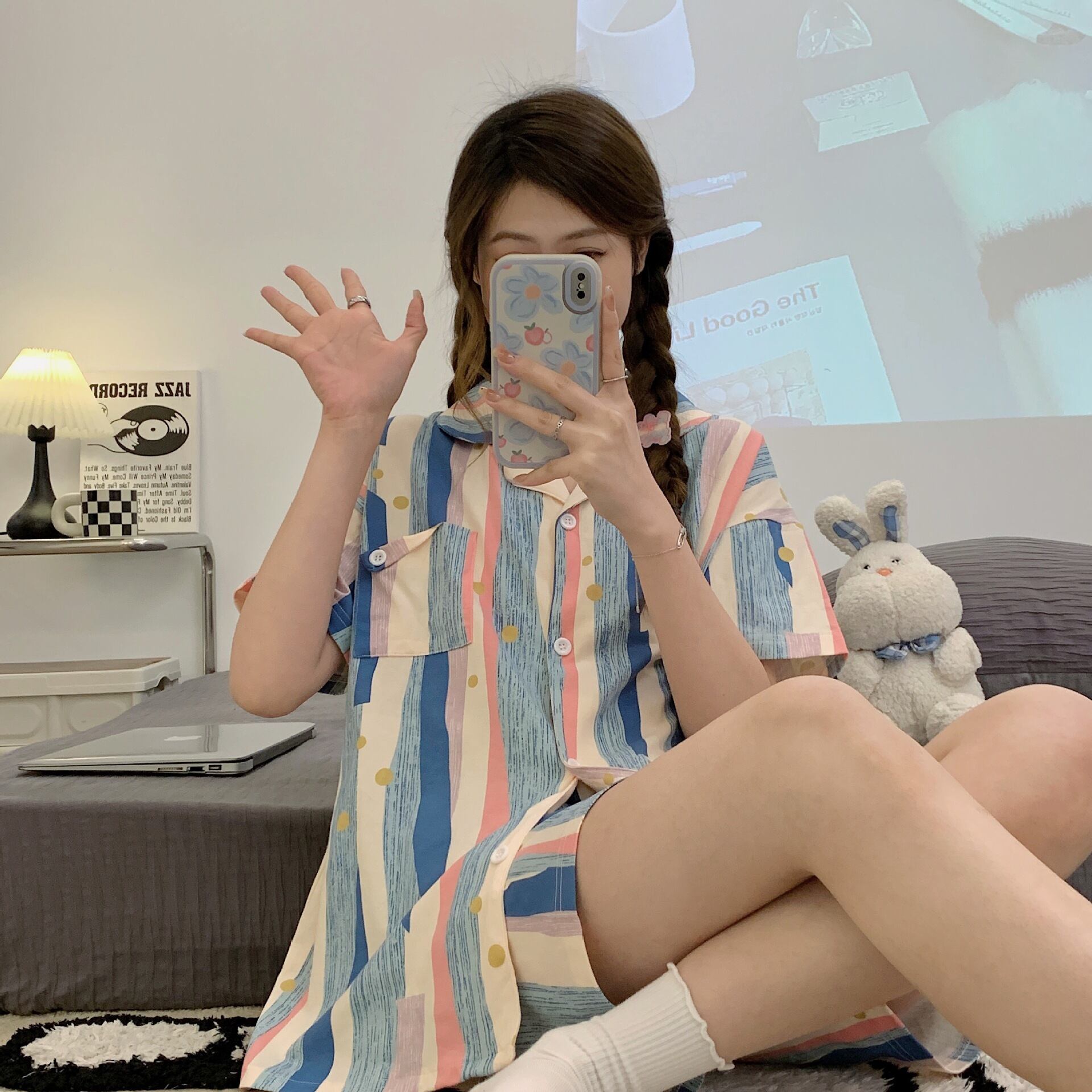 ✿2023新作 韓国系 ins風 ストライプ柄 ルームウェア 夏 M L LL 半袖セット・パジャマ76001629