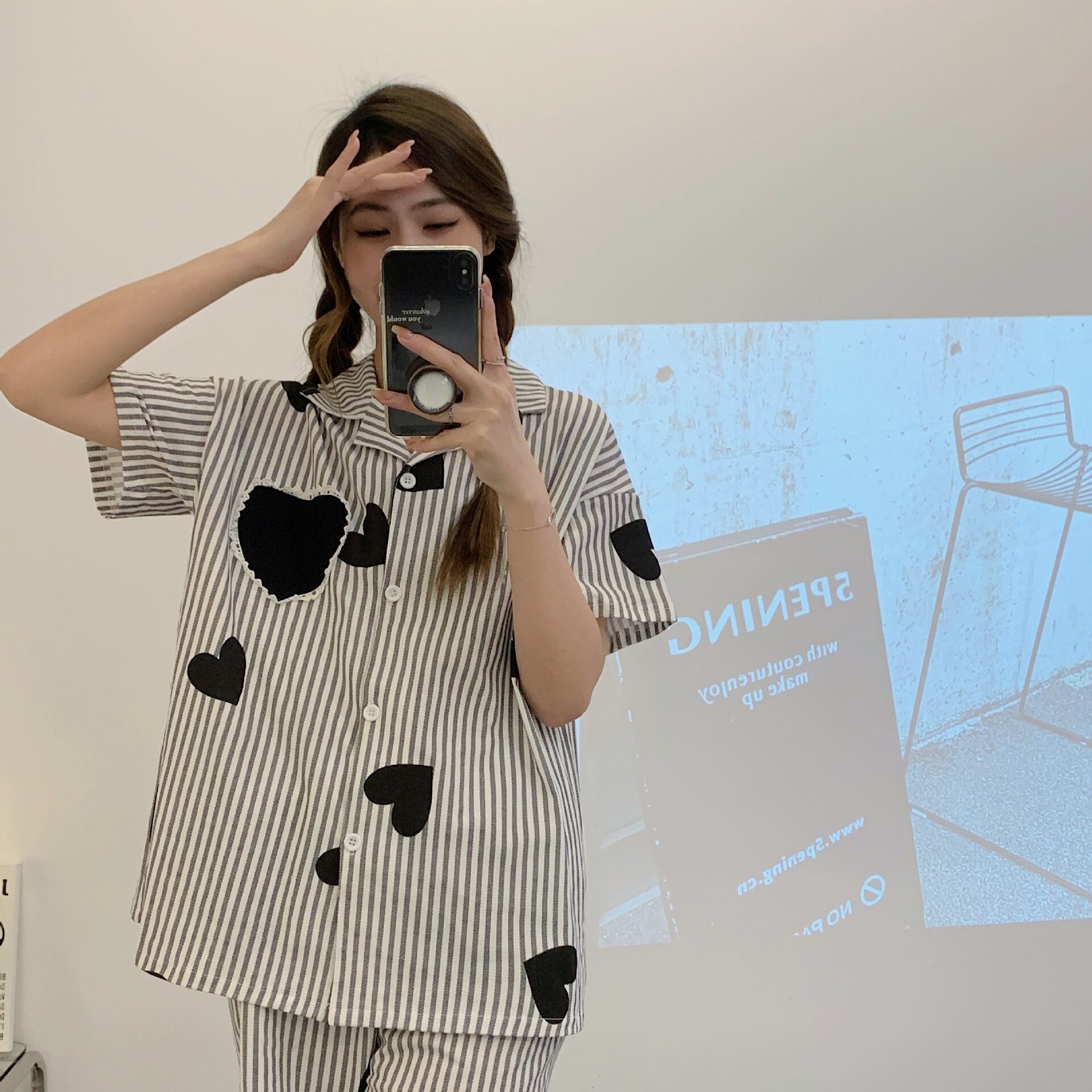 ✿2023新作 韓国系 ストライプ柄 ハート形 ルームウェア 夏 M L LL 半袖セット・パジャマ76001718