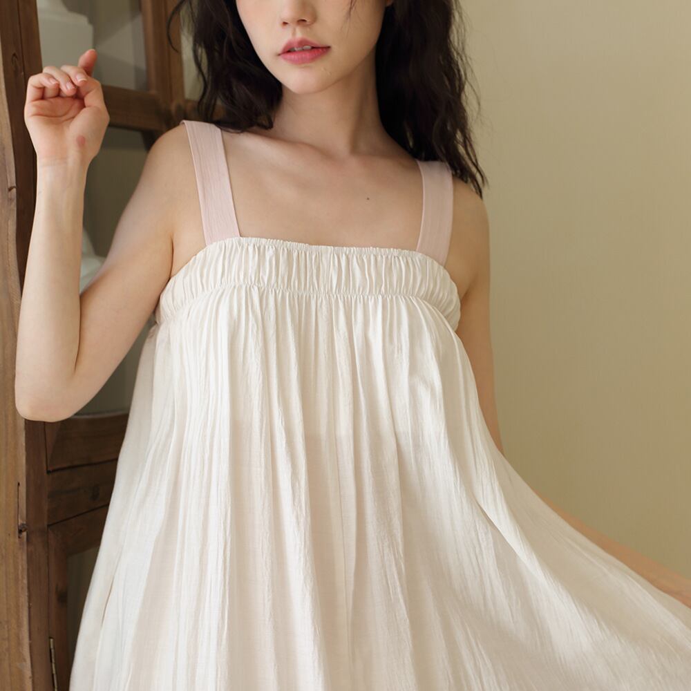 ✿2023新作 配色 柔らかく シンプル ロング ルームウェア 夏 2色 ワンピース パジャマ76524175