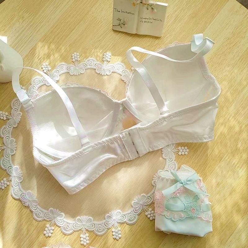 2023新作✿(A-Dカップ)ゆる可愛 リボン 刺繍 2色 レース ワイヤー入り ブラ&ショーツセット76604386