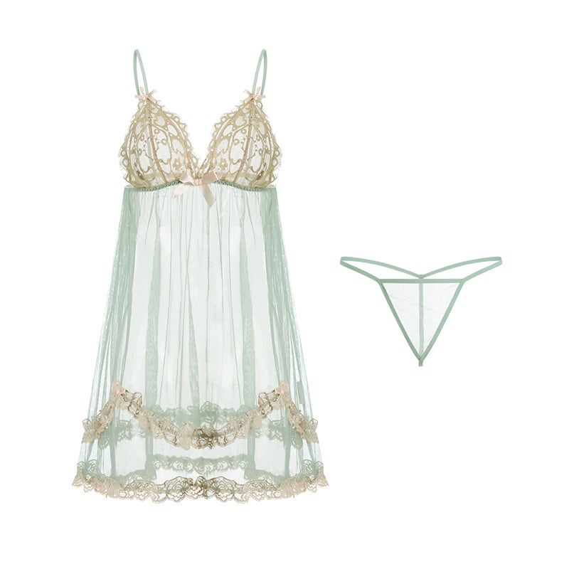 【ROSEシリーズ 】(2点)セクシー シースルー リボン レース 誘惑 M L ランジェリー パジャマ76664784
