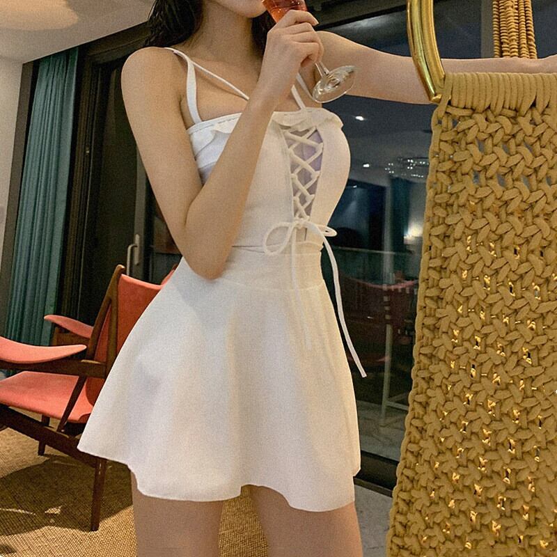 (2点)おしゃれ リボン 無地 ワイヤーなし ホワイト モノキニ M L LL ビーチ 水着77119159