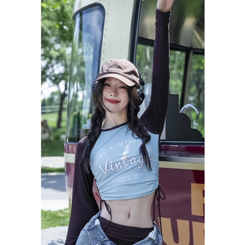 (2点)スポーツ風 可愛い 配色 ドローストリング パープル 2色 S M L LL タンキニ 水着77127204