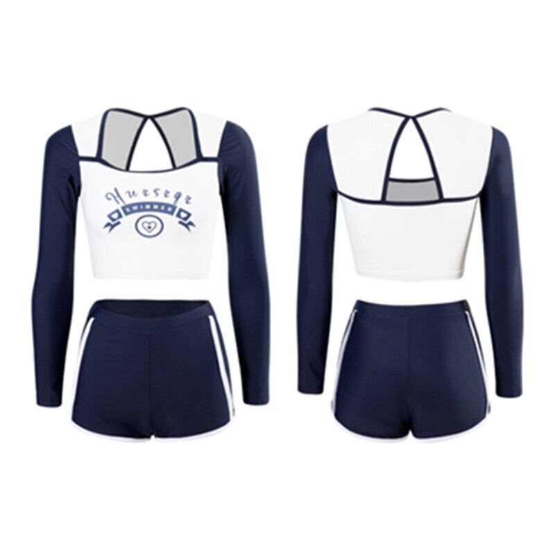 ✿2023新作(2点)スポーツ風 カジュアル 2色 長袖 配色 M L LL パッド付き タンキニ 水着77372902