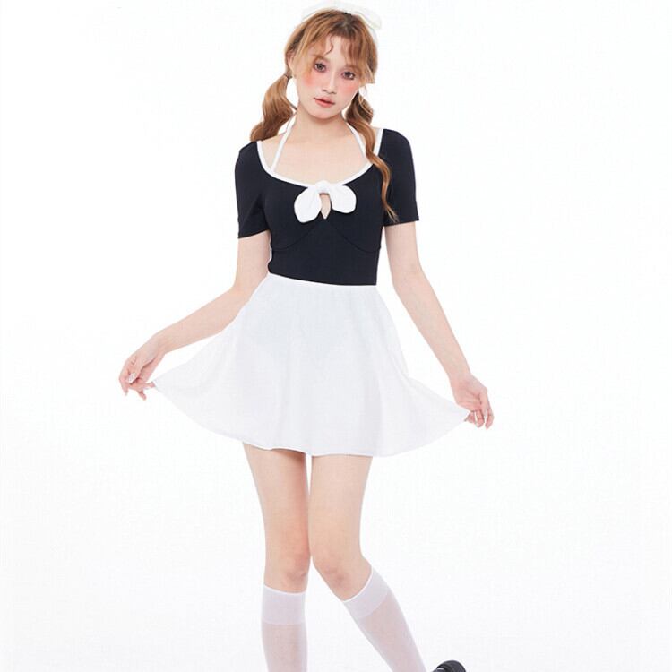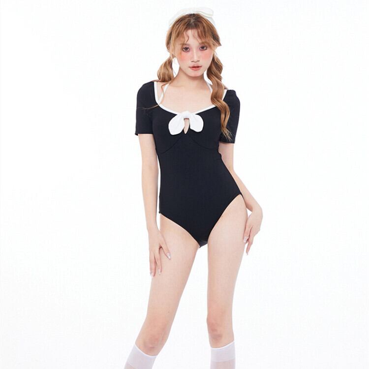 ✿2023新作 (2点)可愛い リボン セットアップ 長袖 2色 M L LL パッド付き モノキニ 水着77373794