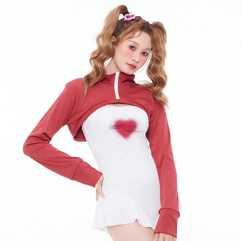 ✿2023新作(2点)可愛い ハート ふりふり 清新 セット 長袖 M L LL パッド付き モノキニ 水着77382376